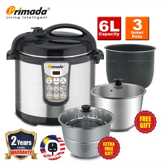 Primada 6 Liter Triple Pots Pressure Cooker Pc6010 1 Non Stick Pot Free 2 Stainless Steel Pots Shopee Malaysia