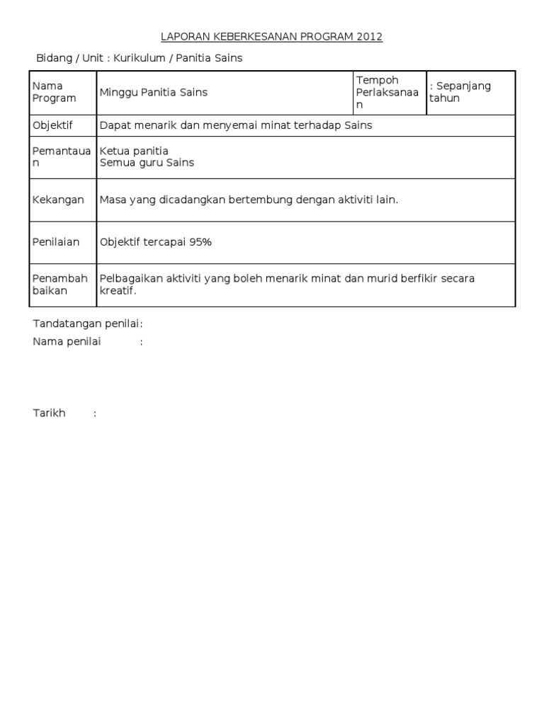 Rekod Pelaksanaan Dan Penilaian Minggu Sains