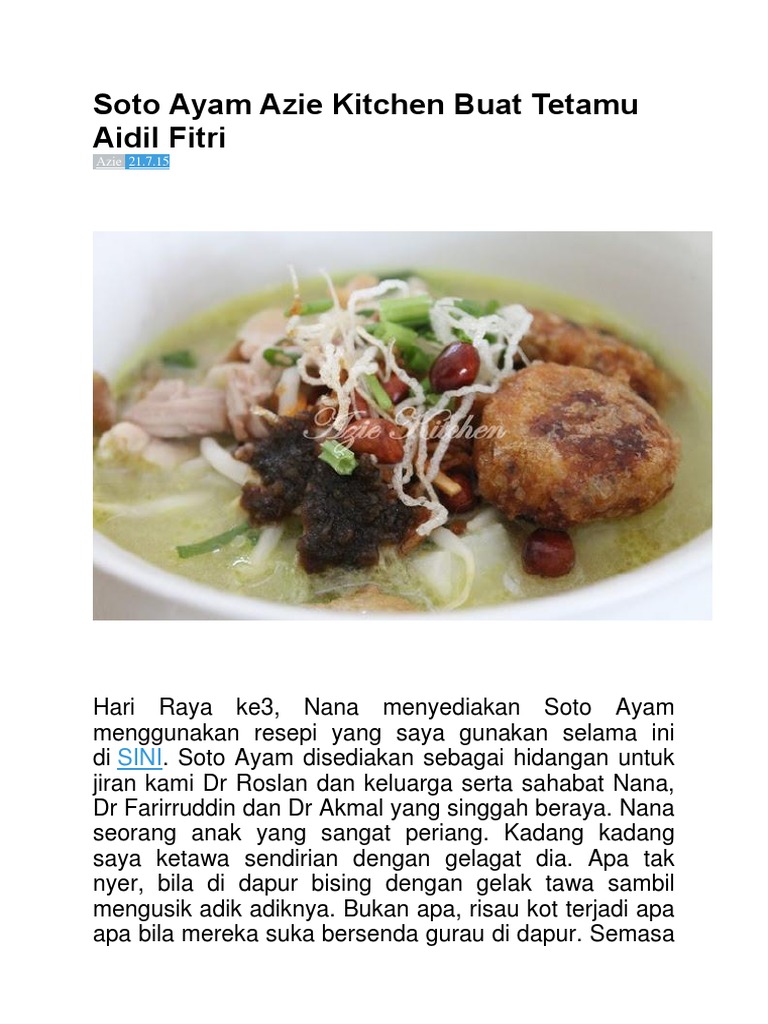Soto Ayam Azie Kitchen Buat Tetamu Aidil Fitri Azie Kitchen